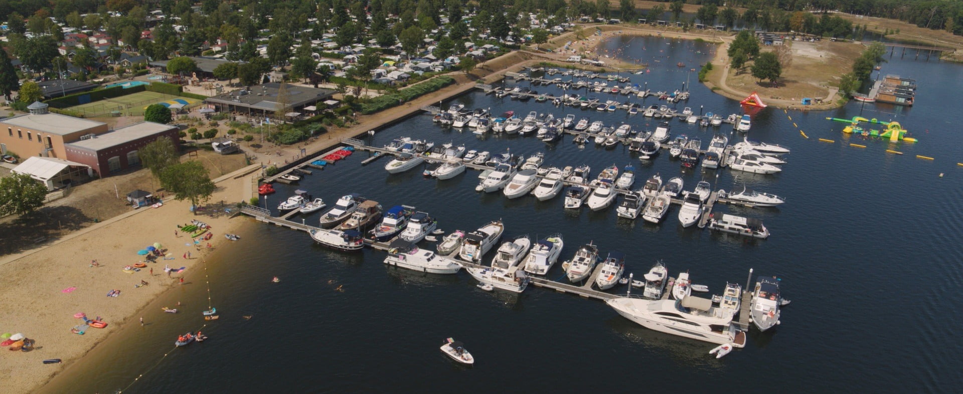 Op deze camping aan het Leukermeer ervaar je een breed recreatief aanbod. Te huur zijn waterfietsen, skelters, elektrische boten en scooters. Er is pumptrack-baan. Op de zandstranden met speeltoestellen, ligweide en een waterpretpark kun je heerlijk spelen. In het hoogseizoen is in weekenden livemuziek in het restaurant. Ook is er een game hal. De door heggen afgebakende staanplaatsen bevinden zich op kleine velden. Tandemassers en campers van meer dan 3,5 ton zijn niet toegestaan.